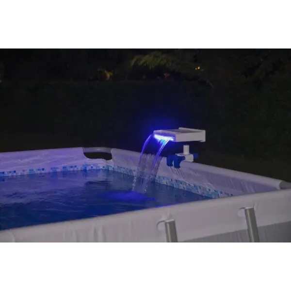Met deze waterval van Bestway maak je jouw opbouwzwembad nog luxueuzer. Op een warme dag is er niks heerlijker dan afkoelen onder het stromend water. De waterval is bovendien voorzien van LED verlichting die je in 8 verschillende standen kunt instellen. Dit zorgt ’s avonds voor extra sfeer in en rond het zwembad.