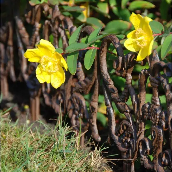 Rustiek gietijzeren perkhekje met een klassieke Victoriaanse decoratie.
