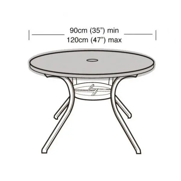 Een beschermhoes voor een tafelblad met een diameter van 90 tot 120 cm. De hoes beschermt de tafel tegen vervuiling en kan makkelijk aangebracht worden.
