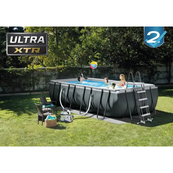 Beleef maximaal zwemplezier met het Ultra XTR frame zwembad van Intex. Het grote zwembad is geschikt voor de ganse familie en de klassieke rechthoekige vorm biedt heel wat zwemruimte.