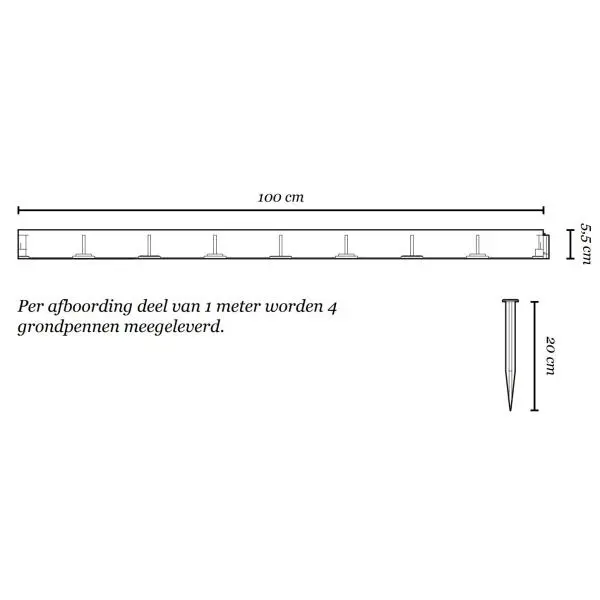 Multi-Edge FLEX is een voordelige en zeer veelzijdige oplossing voor het afboorden van plantenborders, gazons, grindpaden en terrassen. De onderdelen schuiven éénvoudig aan elkaar en per onderdeel van 1 meter worden 4 grondpennen meegeleverd.