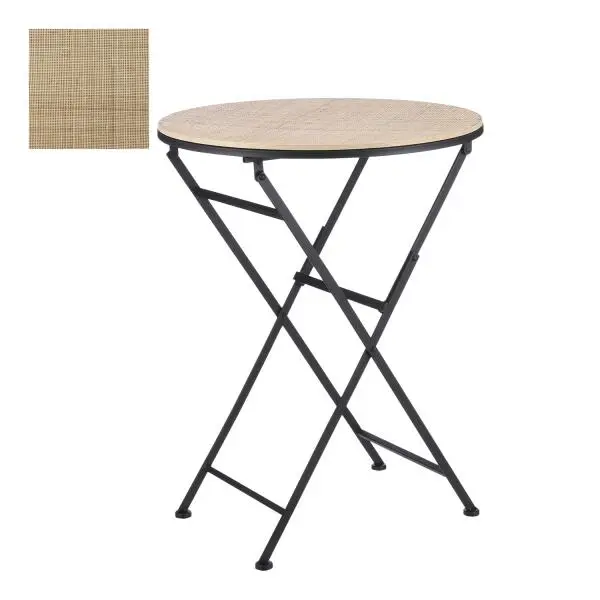 Deze ronde bistrotafel geeft een meerwaarde aan het kleinste hoekje van de tuin en staat ook beeldig op het terras of balkon. Het onderstel is vervaardigd uit metaal voorzien van een zwarte coating. Het blad heeft de looks van een rieten bekleding waardoor het tafeltje zeer natuurlijk oogt.