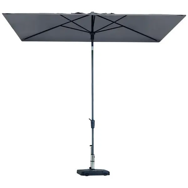 Dit staand model wordt geleverd zonder een voet en heeft een antraciet kleurig frame. De parasol heeft een luifel van 100% polyester met een PA-coating die hem licht waterafstotend en kleuvast maakt voor minimaal 2000 zonuren. Onbezorgd genieten dus!