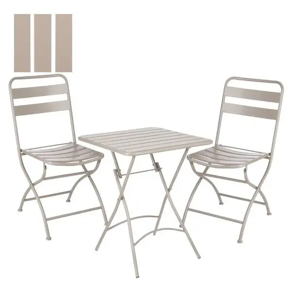 De bistroset is vervaardigd uit metaal en heeft een strakke afwerking waardoor hij in elke tuin mooi staat. Zowel de stoelen als de tafel zijn inklapbaar waardoor je ze eenvoudig kan opbergen of verplaatsen bij plaatsgebrek. Dé eyecatcher om jouw chillhoek in de tuin af te werken.