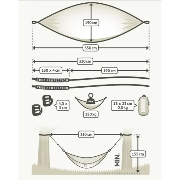 Met de extra brede boomriem kan je de hangmat stevig rond een boomstam bevestigen zonder de boomschors te beschadigen. De riem geeft hierbij een optimale steun. Met de door La Siësta ontwikkelde CrocodileHooks hang je de mat veilig op en kan je ze in de hoogte verstellen.
