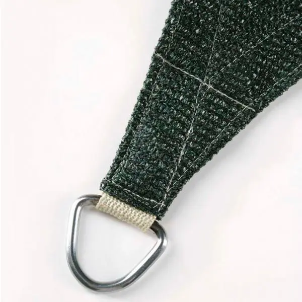 Het vierkante zeil heeft 4 verstevigde hoeken met bevestigingsringen zodat je het overal tussen 4 punten kan spannen. Het zeil heeft een donkergroene kleur en is voorzien van bevestigingstouwen.