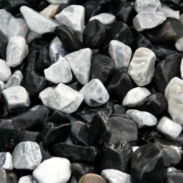 Zebra grind is een sierlijke, bijzondere grindsoort met een gemengde kleur, namelijk lichtgrijs en zwart. Zebra grind geeft een uitgeproken, zeer stijlvolle sfeer aan de tuin of oprit. De lichte en donkere tinten passen mooi bij elkaar en vormen een bijzonder geheel.